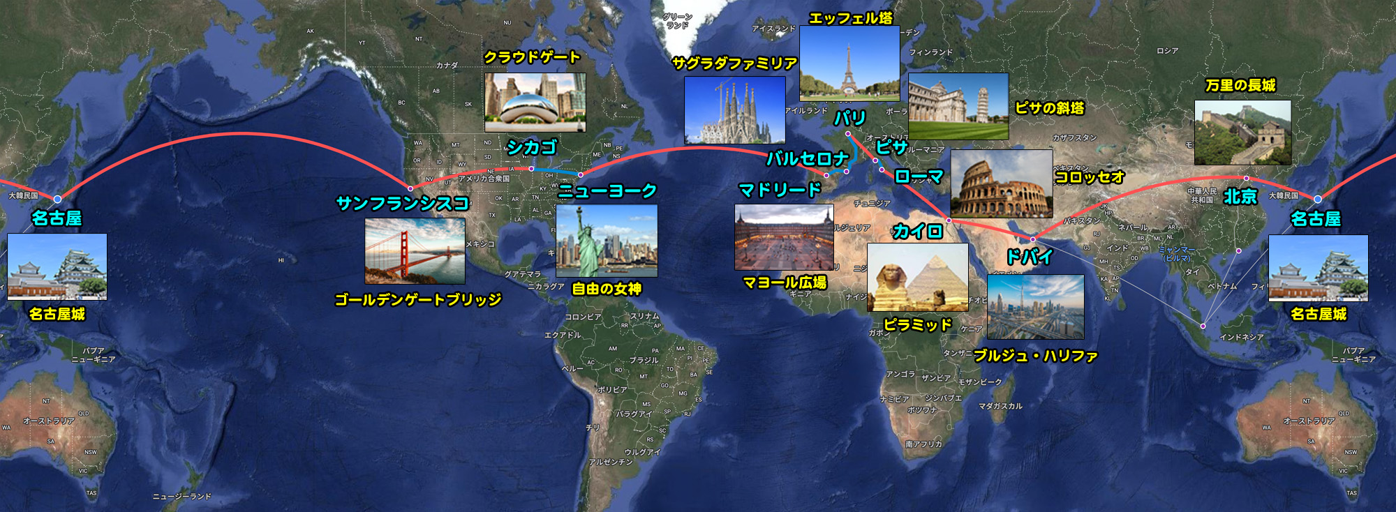 ✈️ 名 古 屋 → 北 京 航空券 ✈️ 北 京 → ド バ イ 航空券 ✈️ ド バ イ → カ イ ロ 航空券 ✈️ カ イ ロ → ロ ー マ 航空券 🚝 フ レ ッ チ ャ ロ ッ サ 🚞 ✈️ ピ サ → パ リ 航空券 🚝 T G V 🚞 ✈️ マドリード → ニューヨーク 航空券 🚝 レイクショア・リミテッド 🚞 ✈️ シ カ ゴ → サンフランシスコ 券 ✈️ サンフランシスコ → 名 古 屋 券